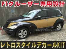 クライスラーPTクルーザーに専用設計された当社オリジナルデザインのレトロスタイルデカールキットです。 画像の金色部分が商品になります。 車種専用設計ですので車体にジャストフィットします。お気軽にイメチェンできるカーラッピングは現在のトレンドです! スリーエム製約5年の耐候性フィルムです。 車種専用に設計されたカスタムデカール!ボディーにえ貼るシールステッカーとなります。 ラッピングフィルムで制作されていますのでボディーにも優しい!