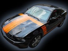 フォード マスタング専用設計のレーシングストライプになります。 BOSS302スタイルデカール。 ボンネットカーブに合わせてストライプを追従させたハイクオリティなストライプです! 写真オレンジの部分が商品部分になります。 スリーエム製、約5年耐候性フィルムです。 車種専用に設計されたカスタムデカール!ボンネットに貼るシールステッカーとなります。 車両用ラッピングフィルムで制作されていますのでボディーにも優しい! 出荷時に商品へ親水効果とUVカット効果のあるコーティングを施工しておりますので、ウォータースポット対策は完了しております。