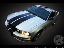 フォード マスタング専用設計のレーシングストライプになります。 商品はセンターストライプのセットとなります。 通常の真っ直ぐのラインではバンパー部など1枚での施工が不可能ですがボディー形状に合わせて角度をつける事により1枚での施工を実現しております。 ボンネット、ルーフなどは10cm程度長めに制作されていますので裏側に折込んで施工して下さい。 写真ブラックの部分が商品部分になります。 スリーエム製、約5年耐候性フィルムです。 車種専用に設計されたカスタムデカール!ボンネットに貼るシールステッカーとなります。 車両用ラッピングフィルムで制作されていますのでボディーにも優しい! 出荷時に商品へ親水効果とUVカット効果のあるコーティングを施工しておりますので、ウォータースポット対策は完了しております。