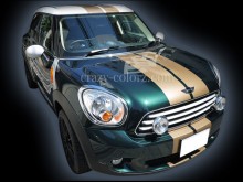 ★☆★商品紹介☆★☆ ミニR60クロスオーバー/カントリーマン専用に設計されたレーシングストライプです。 写真ゴールド部分のストライプ左右が商品になります。 レーシングストライプステッカーでお気軽ドレスアップを! ミニクーパーカスタムにはかかせません! 通常カラーは人気の3色ブラック、ホワイト、マットブラックをご用意致しました。 スリーエム製約5年の耐候性フィルムです。