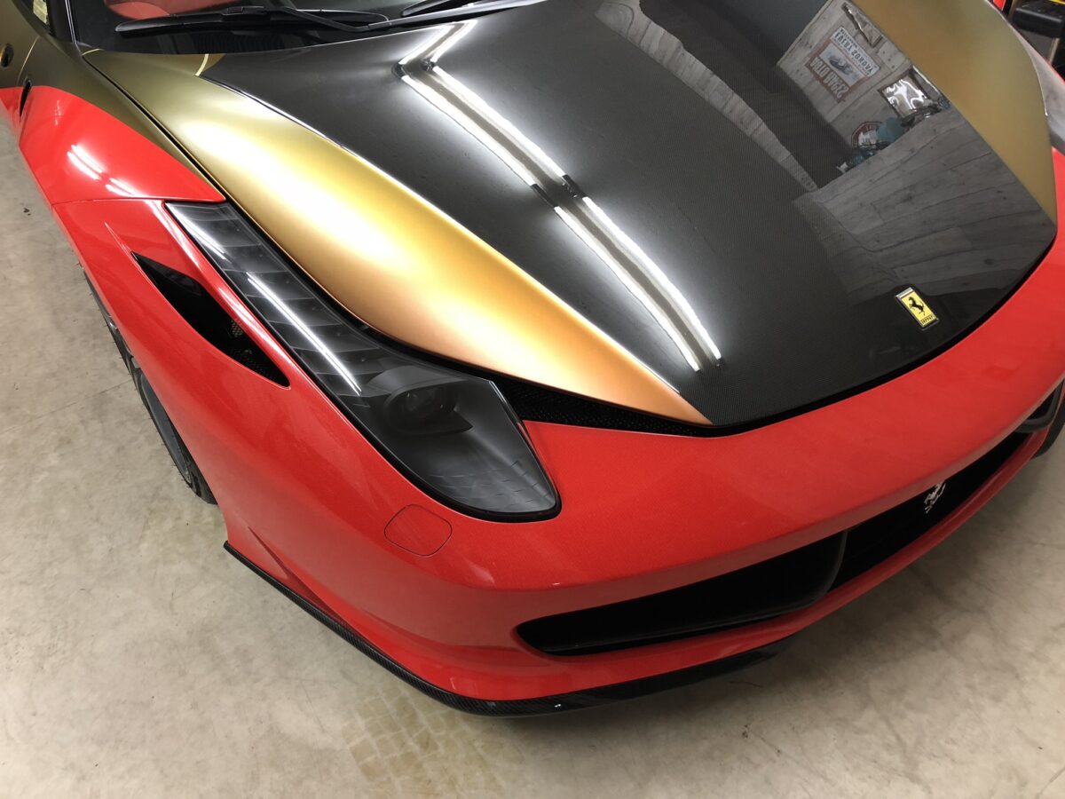 写真をご覧いただければわかる通り、マシンの精度と職人の貼り付け技術が合わさることで、ラッピングは単なる「シール」ではなく、ボディの造形の一部へと昇華します。✨