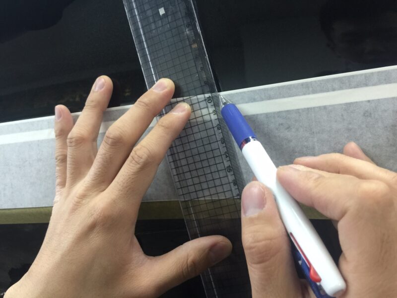 ガイドにはマスキングテープを使うと位置が出しやすくなります。