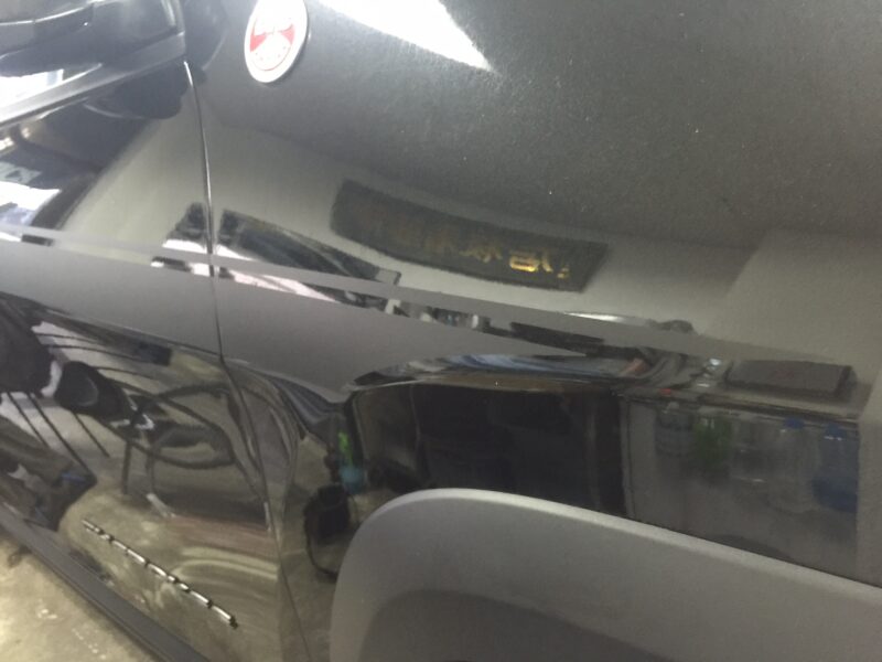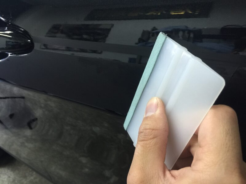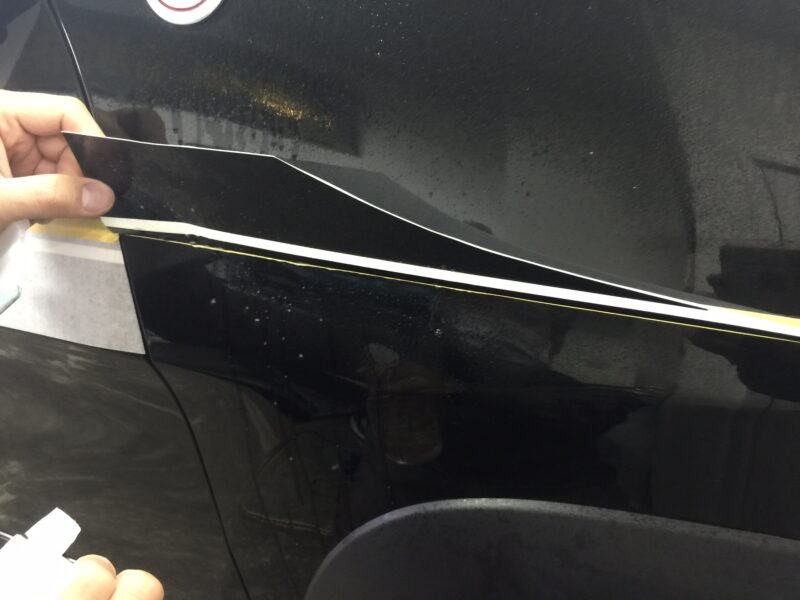 ドアエッジ部分はアプリケーションフィルムを剥がしてからドライヤーを当てながら折り込み処理をするとつきやすいです。